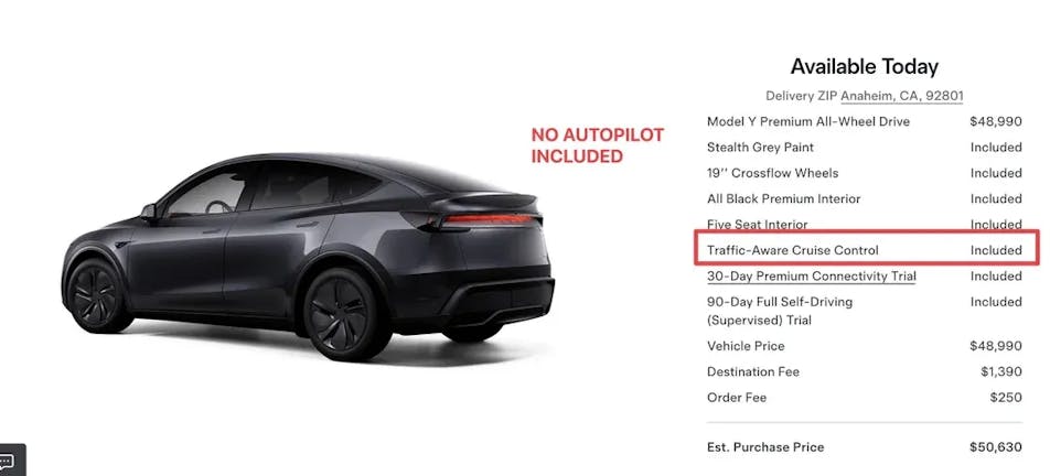 Tesla has officially discontinued Autopilot in the U.S. and Canada. All new car purchases now come standard with Traffic-Aware Cruise Control. The online configurator has now been updated to allow buyers to choose the $99/month FSD subscription, while still offering the option