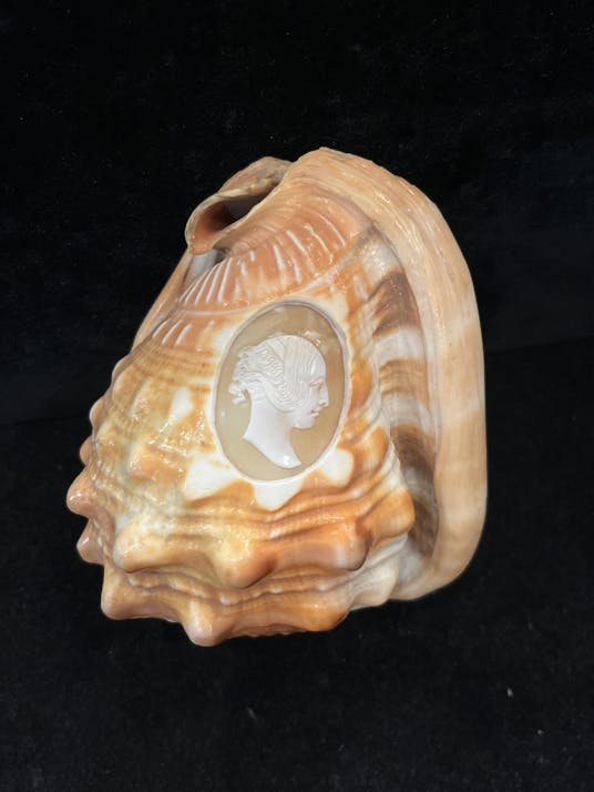 This is an antique cameo that was never removed from the shell into which it was carved.