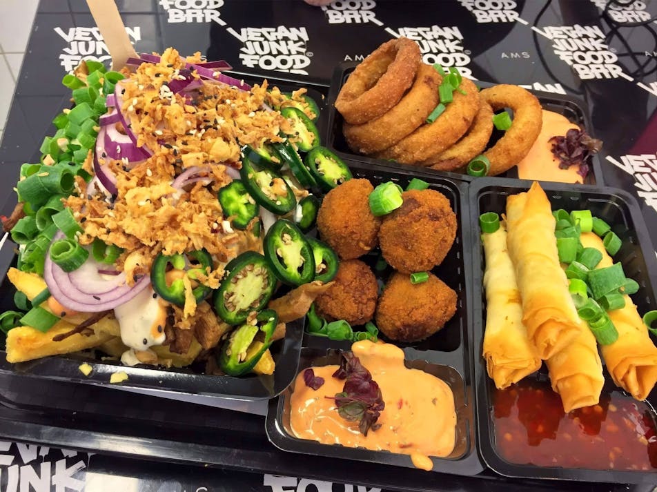 ...That won't get you automatically punched in the face if you served it to me without at least one tasty dead animal - because, at the very least, the onion rings might be passable (though the fake queso seems revolting, so maybe flip the tray around the other way)