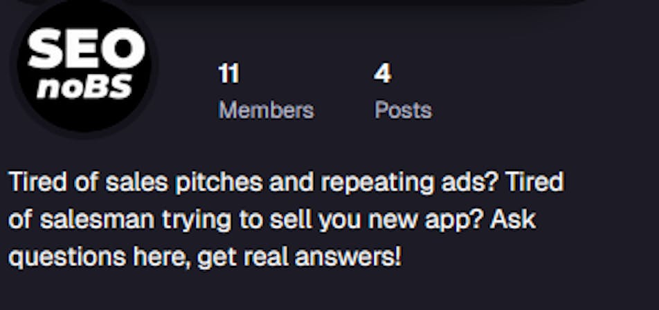 So I had created SeoNoBS, which community focused on some SEO advice, discussion and stuff. It was clearly marked at being non-advertisment, non-selfpromotion, no linking, no tools all that other crap. It was a small I guess community, with mostly me posting informational posts a