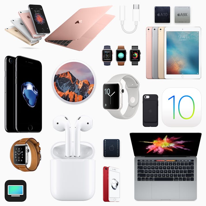 iPhone 7. Jet Black. MacBook Pro Touch Bar. AirPods. iOS 10. macOS Sierra. Ceramic Apple Watch. The end of the headphone jack. iPad Pro (9.7").