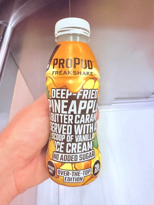 Deep fried pineapple & butter caramel served with a scoop of vanilla ice cream. 20gs of protein with no sugar to make up for the 5,000 cals I had for dinner last night.