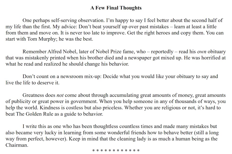 Warren Buffett's "Few Final Thoughts" in his last letter