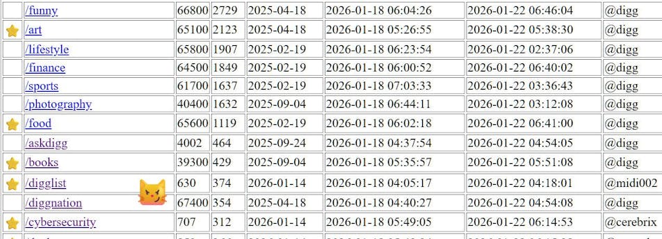 You can download an updated CSV of all known Digg communities