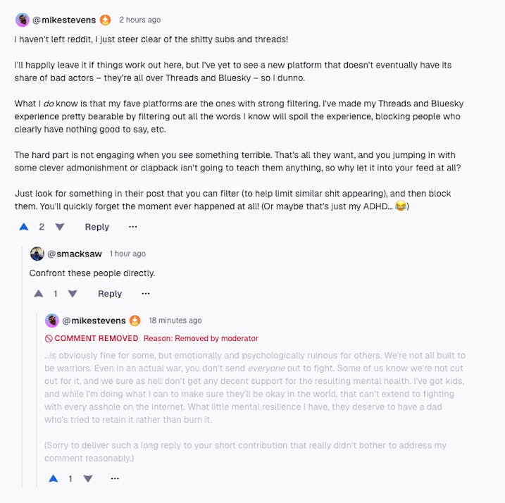 I feel it's a little ironic that this comment, in a post about why folks are coming here, was removed, without a moderator note, in an official Digg-founded community that still has no guidelines. (Unless the site's TOS are this community's guidelines? Make that clearer.) To b