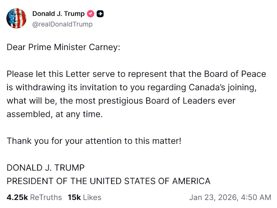 Trump withdraws invite for Canada's Carney to join 'Board of Peace'