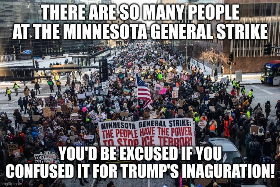 Trump had 600 people at +14F for his inaguration. Minnesota had 15,600 at -26F for their general strike.