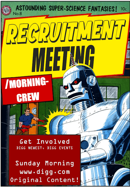 Now that the land grab is upon us, it's going to get a lot harder to see all the MORNING CREW folk out there and I wasn't keeping a list of recruits. Who else should join the Digg Illuminati?
