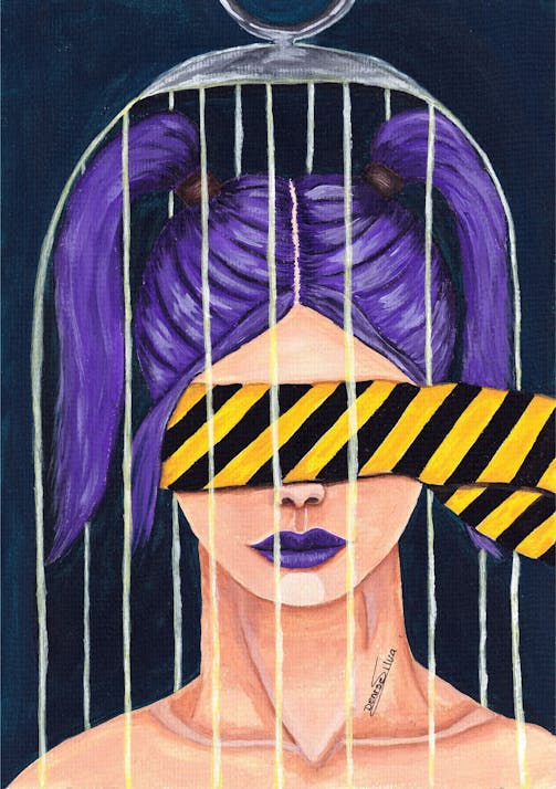 Toxic Positivity explores the pressure to appear fine when something is clearly wrong.Blindfolded by forced optimism and trapped behind invisible bars, this piece questions how often discomfort is dismissed in the name of “good vibes only.” Not everything that looks bright is he