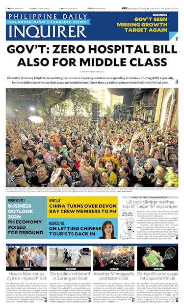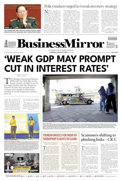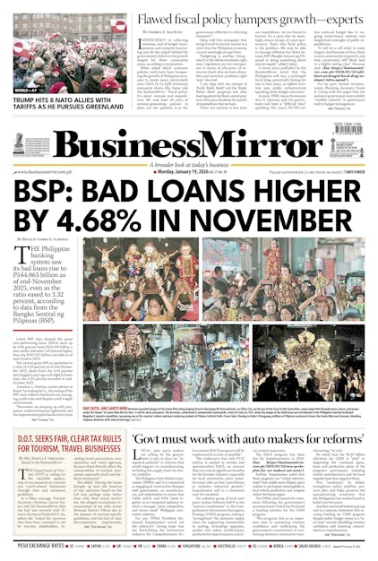 Mon, 26 Jan 2026 • Front page for national and business newspapers